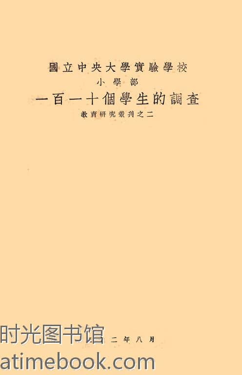 | 网盘路径:/时光图书馆珍藏系列/书籍文件/老图书/《国立*大学实验学校小学部:一百一十个学生的调查》电子版合集.db | ||