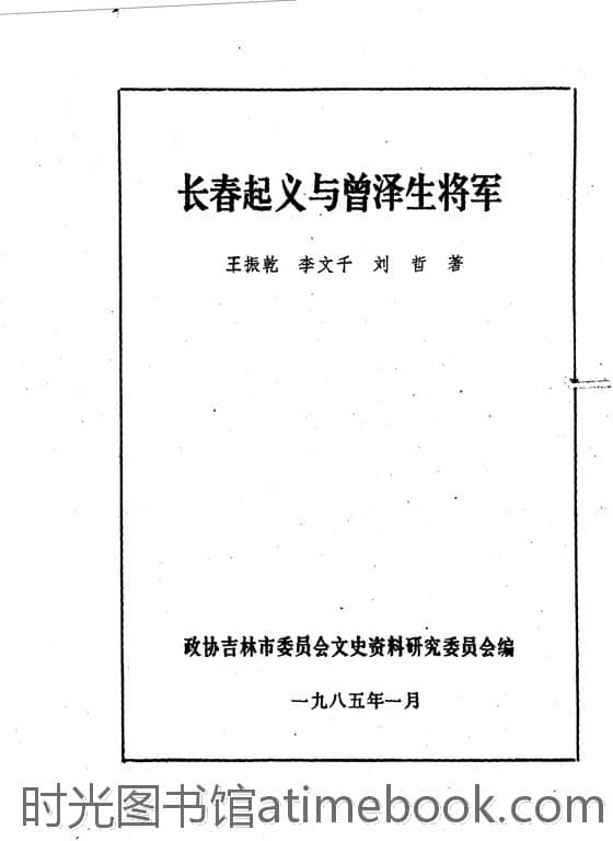 | 网盘路径:/时光图书馆珍藏系列/书籍文件/老图书/《吉林市文史资料_第3辑_长春起义与曾泽生将*》电子版合集.db | ||