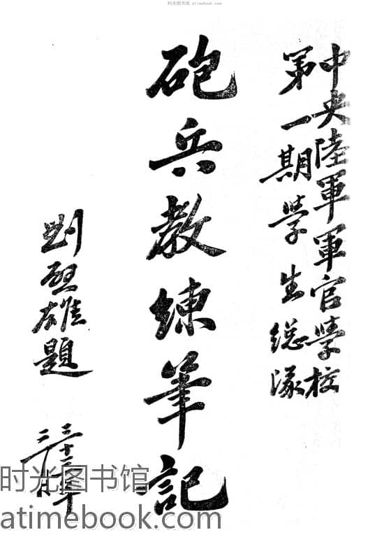 | 网盘路径:/时光图书馆珍藏系列/书籍文件/老图书/《*陆**官学校第一期学生总队炮兵教练笔记》电子版合集.db | ||