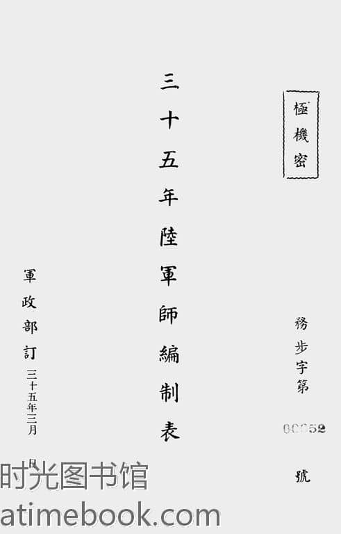 | 网盘路径:/时光图书馆珍藏系列/书籍文件/老图书/《三十五年陆.*.师.编.制.表》电子版合集.db | ||