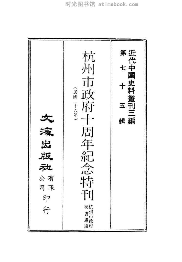 网盘路径:/时光图书馆珍藏系列/书籍文件/老图书/《杭州市*十周年纪念特刊(民国二十六年)》电子版合集.db