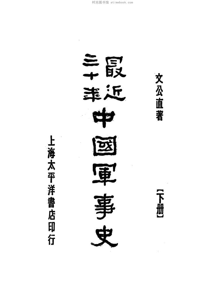 | 网盘路径:/时光图书馆珍藏系列/书籍文件/老图书/《最近三十年中国*事史下册》电子版合集.db | ||