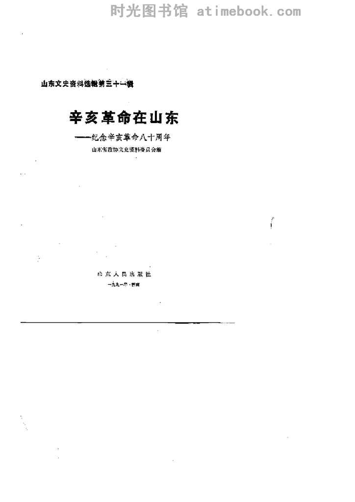 | 网盘路径:/时光图书馆珍藏系列/书籍文件/老图书/《山东文史资料选辑_第31辑_辛亥*在山东——纪念辛亥*八十周年》电子版合集.db | ||