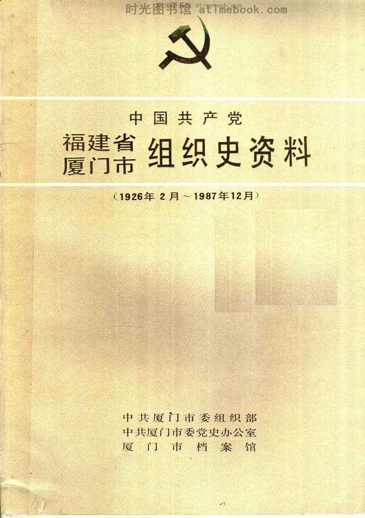 | 网盘路径:/时光图书馆珍藏系列/书籍文件/老图书/《中国*福建省厦门市组织史资料(1926年2月-1987年12月)》电子版合集.db | ||