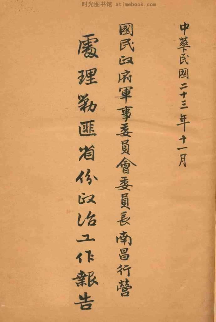 | 网盘路径:/时光图书馆珍藏系列/书籍文件/老图书/《国民**事委员会委员长南昌行营处理剿*省份政治工作报告》电子版合集.db | ||