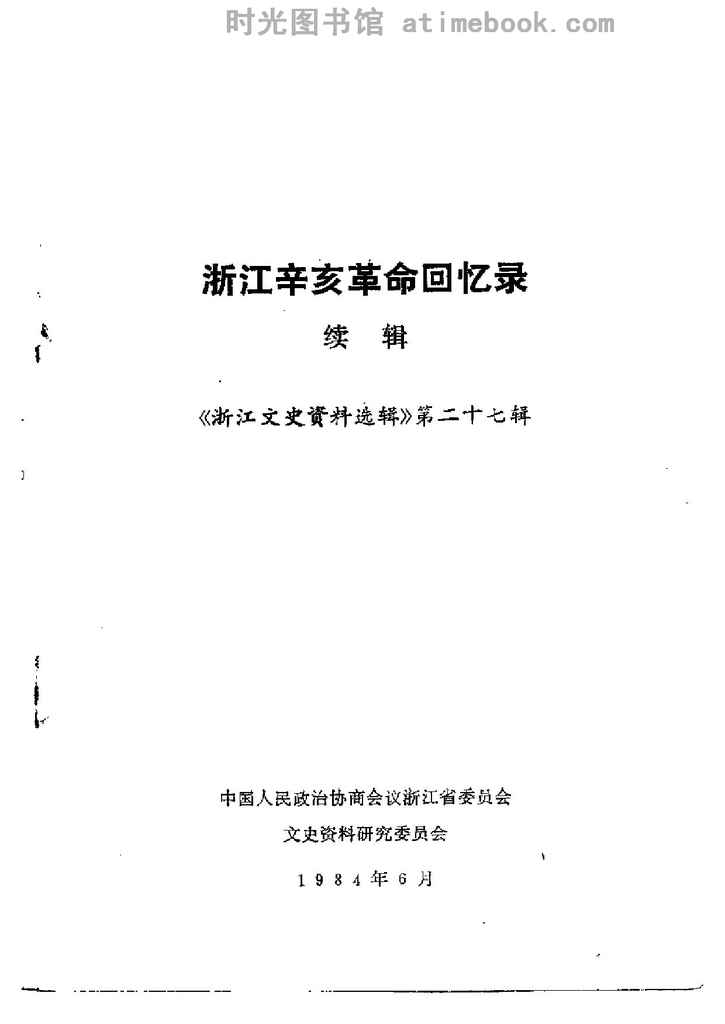 名称:《浙江文史资料选辑_第27辑_浙江辛亥*回忆录_续辑》电子版合集