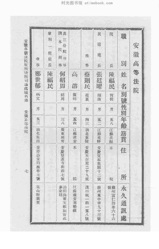 | 网盘路径:/时光图书馆珍藏系列/书籍文件/老图书/《安徽各级*监所暨县*处职员录》电子版合集.db | ||