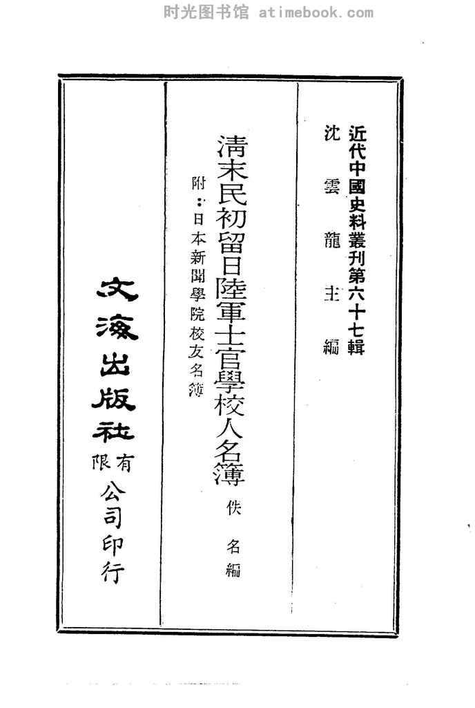 | 网盘路径:/时光图书馆珍藏系列/书籍文件/老图书/《清末民初留日陆*士官学校人名簿》电子版合集.db | ||