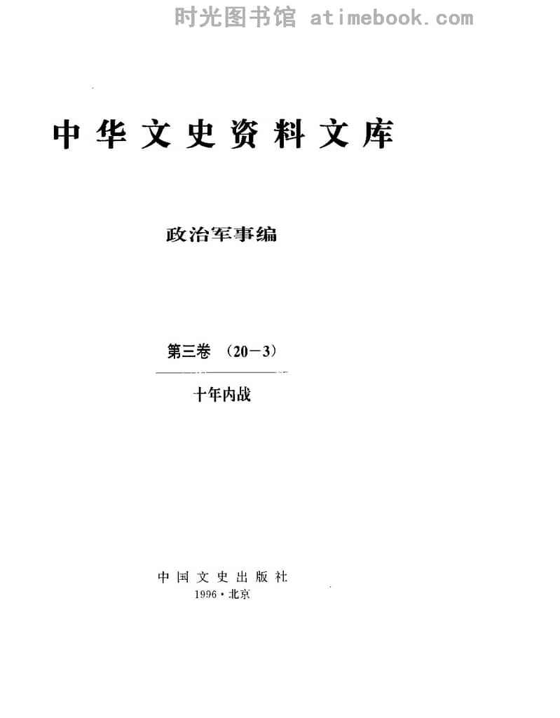 | 网盘路径:/时光图书馆珍藏系列/书籍文件/老图书/《中华文史资料文库_政治*事编_第3卷_十年内战》电子版合集.db | ||