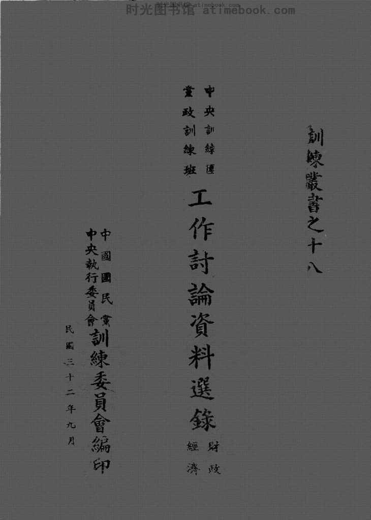 网盘路径:/时光图书馆珍藏系列/书籍文件/老图书/《*训练团*政训练班工作讨论资料选录:财政、经济》电子版合集.db