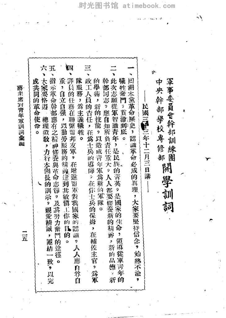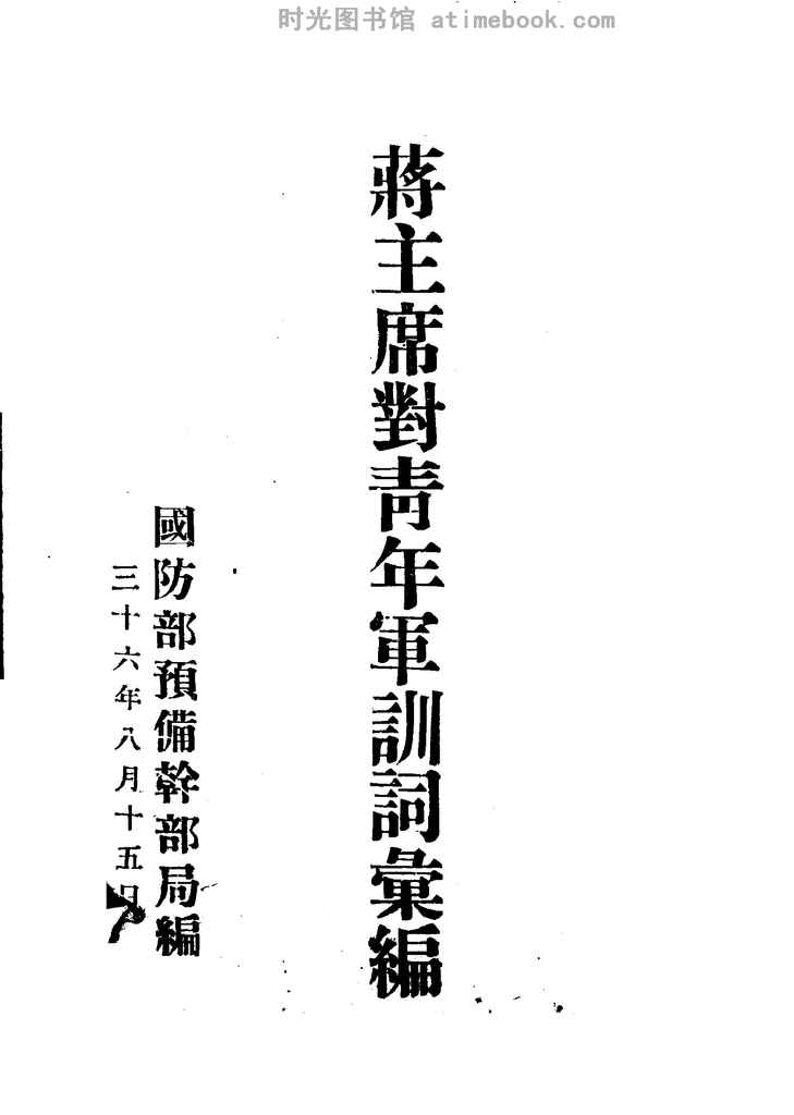 | 网盘路径:/时光图书馆珍藏系列/书籍文件/老图书/《蒋主席对青年*训词汇编》电子版合集.db | ||