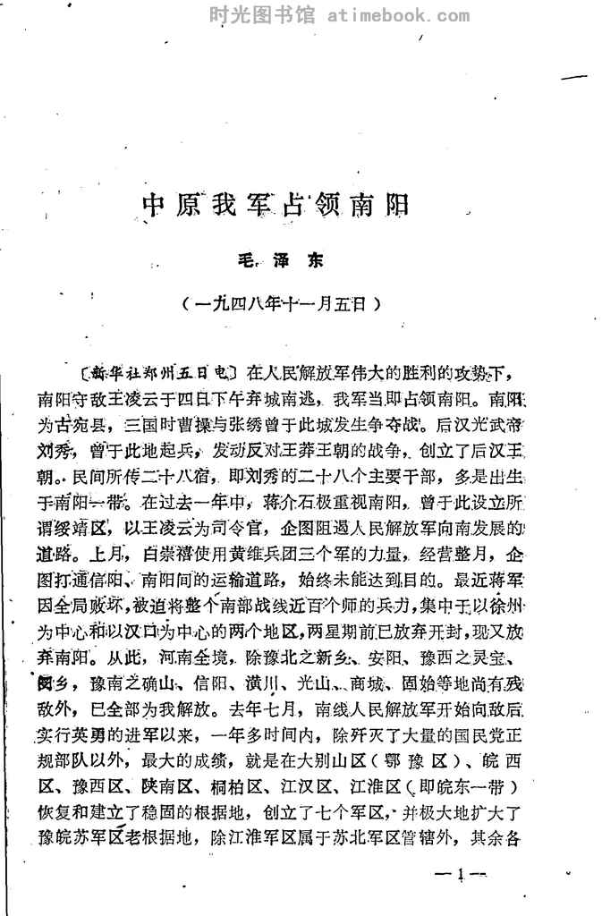 4-中原我*占领南阳(1948年11月5日)——毛泽东同志为新华社写的新闻稿