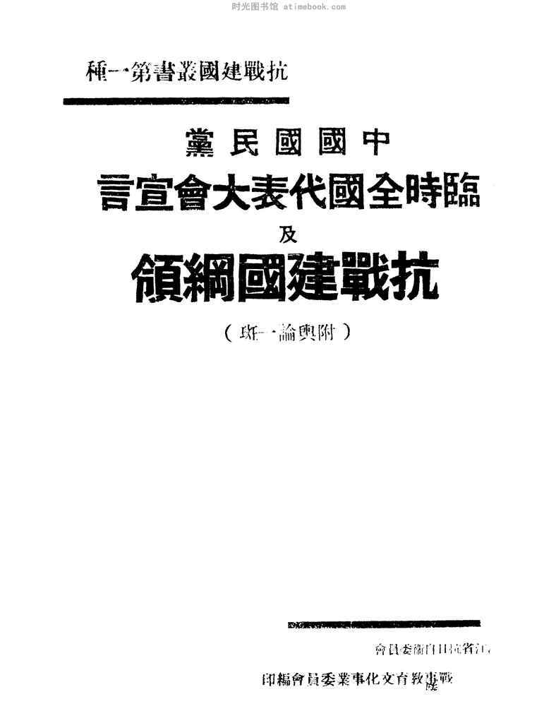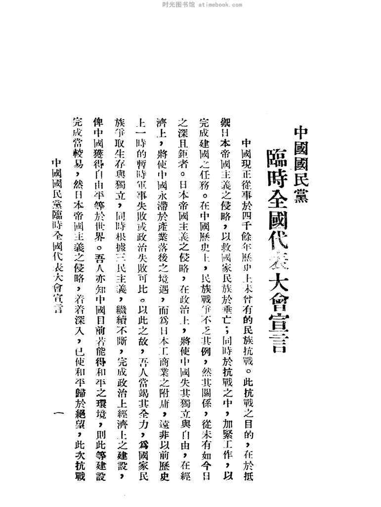 | 网盘路径:/时光图书馆珍藏系列/书籍文件/老图书/《中国国民*临时全国代表大会宣言及抗战建国纲领》电子版合集.db | ||