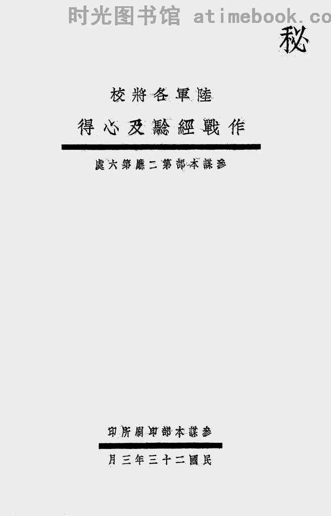 | 网盘路径:/时光图书馆珍藏系列/书籍文件/老图书/《陆*各将校作战经验及心得》电子版合集.db | ||