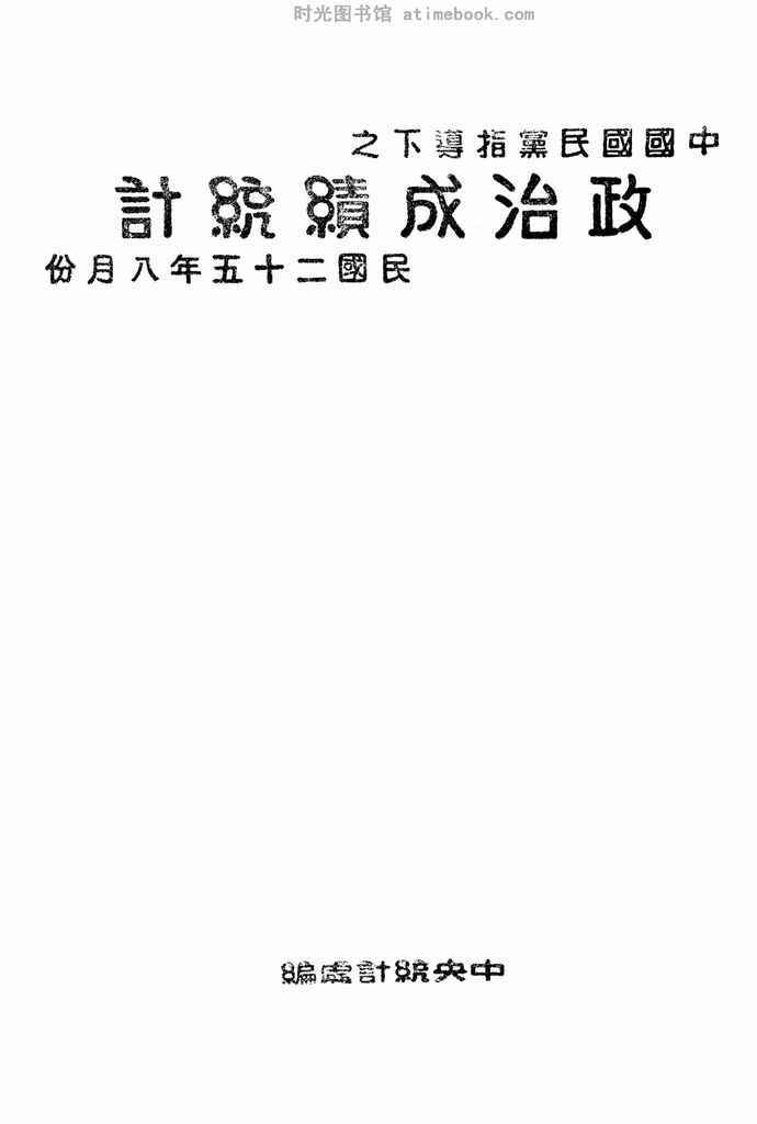 | 网盘路径:/时光图书馆珍藏系列/书籍文件/老图书/《中国国民*指导下之政治成绩统计_民国二十五年八月份》电子版合集.db | ||
