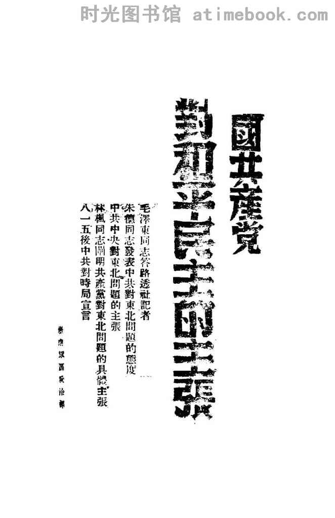 | 网盘路径:/时光图书馆珍藏系列/书籍文件/老图书/《中国**对和平民主的主张》电子版合集.db | ||
