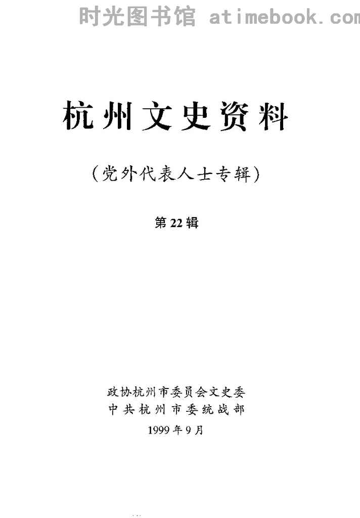 | 网盘路径:/时光图书馆珍藏系列/书籍文件/老图书/《杭州文史资料_第22辑_*外代表人士专辑》电子版合集.db | ||