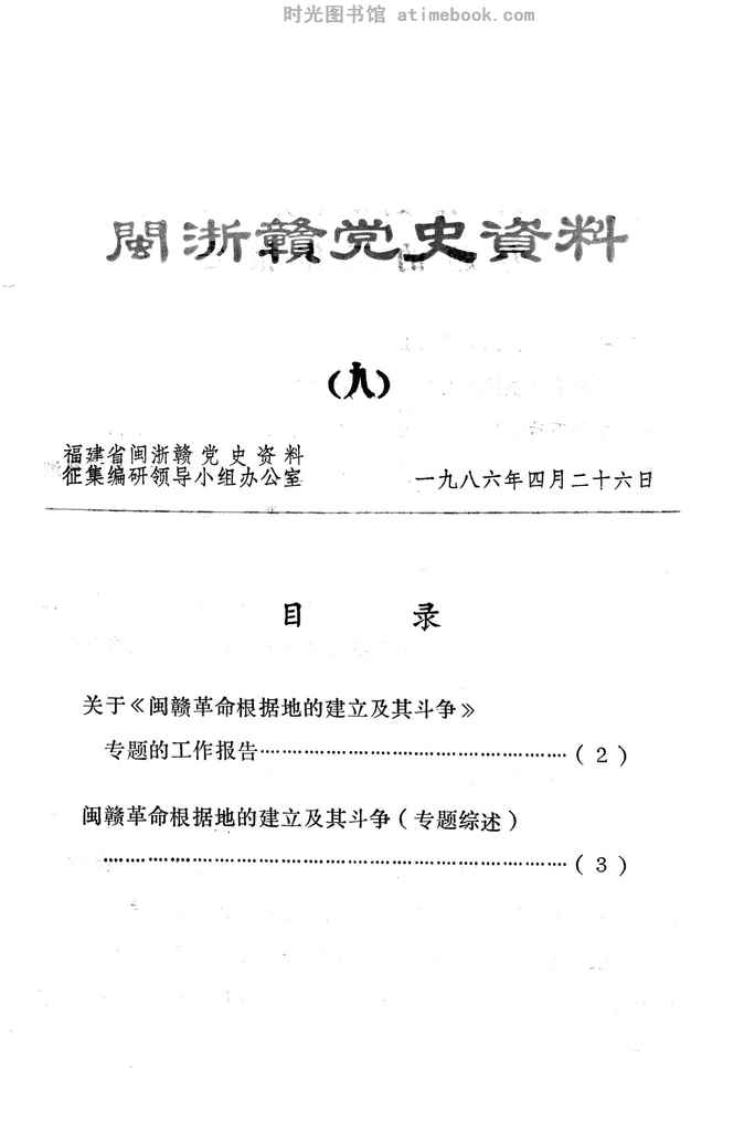 | 网盘路径:/时光图书馆珍藏系列/书籍文件/老图书/《闽浙赣*史资料_九》电子版合集.db | ||