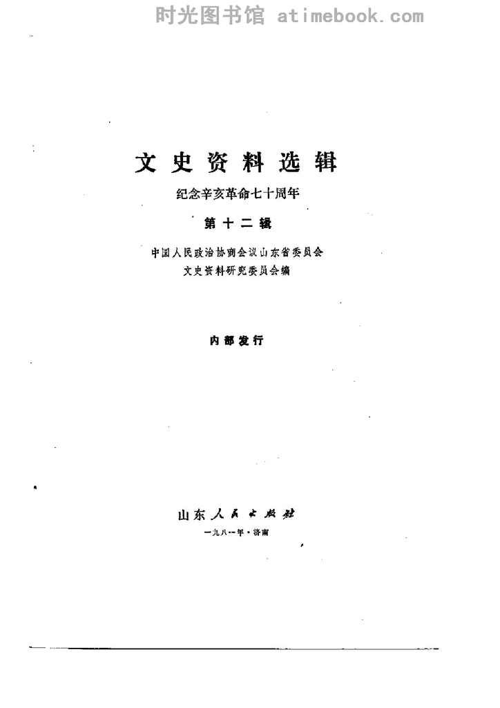 | 网盘路径:/时光图书馆珍藏系列/书籍文件/老图书/《山东省文史资料选辑_第12辑_纪念辛亥*七十周年》电子版合集.db | ||