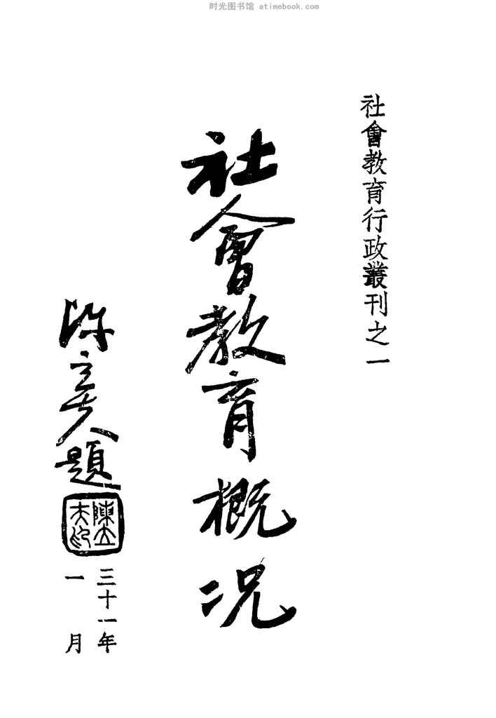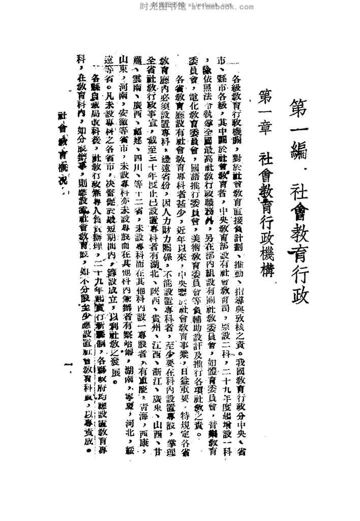 | 网盘路径:/时光图书馆珍藏系列/书籍文件/老图书/《社会教育*丛刊之一_社会教育概况(全一册)》电子版合集.db | ||
