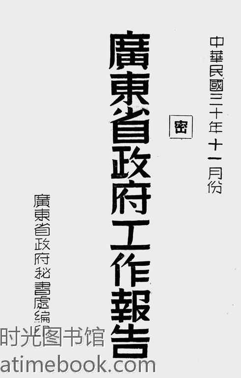 | 网盘路径:/时光图书馆珍藏系列/书籍文件/老图书/《广东省*工作报告(_中华民国三十年十一月份)》电子版合集.db | ||