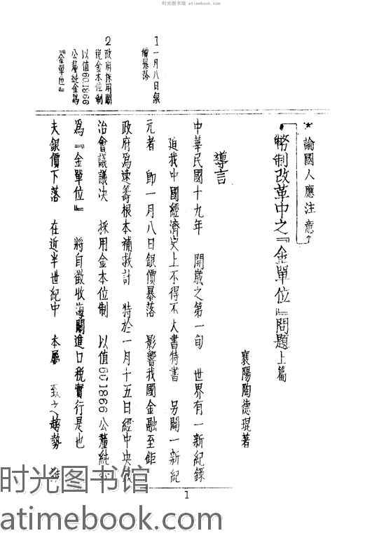 网盘路径:/时光图书馆珍藏系列/书籍文件/老图书/《币制*中之“金本位”问题》电子版合集.db