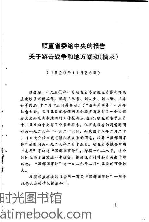 2-顺直省委给*的报告——关于游击战争和地方*(摘录)