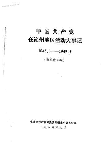 老图书–《中国**在锦州地区活动大事记(_1945.8-1949.9)》电子版合集