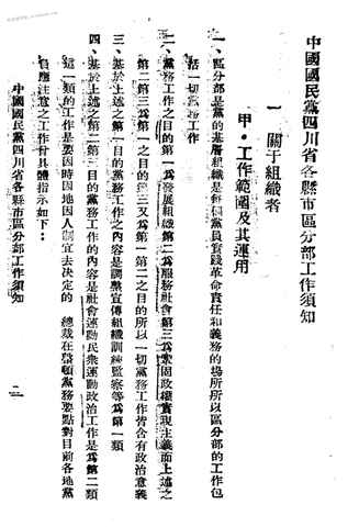 | 关键词:中国国民*,四川省,分部,工作须知, | ||