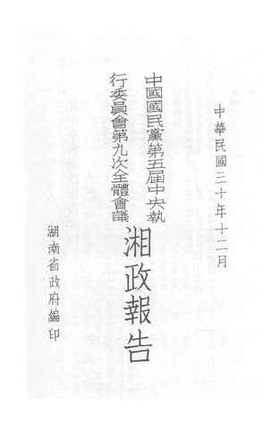 名称:《中国国民*第五届*执行委员会第九次全体会议_湘政报告》电子版合集
