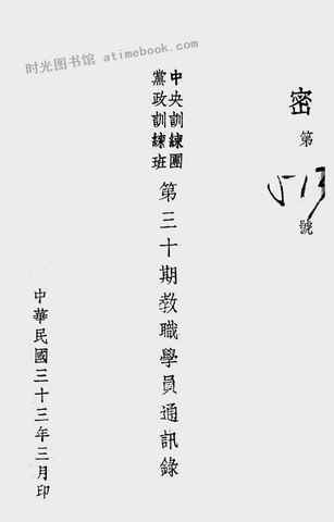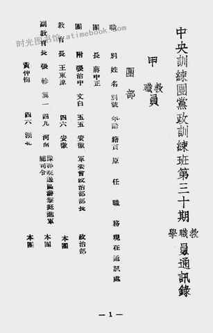 | 网盘路径:/时光图书馆珍藏系列/书籍文件/老图书/《*训练团*政训练班第三十期教职学员通讯录》电子版合集.db | ||