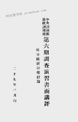 网盘路径:/时光图书馆珍藏系列/书籍文件/老图书/《*训练团*政训练班第六期调查演习书面讲评(附分组研讨总结论)》电子版合集.db