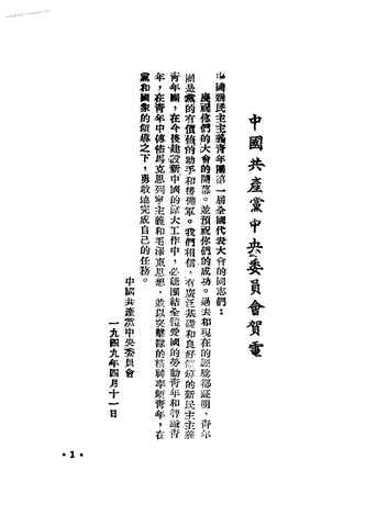 9-关于中国新民主义青年团团章报告–一九四九年四月十三日将南翔同志在大会上的报告