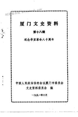 | 网盘路径:/时光图书馆珍藏系列/书籍文件/老图书/《厦门文史资料_第18辑_纪念辛亥*80周年》电子版合集.db | ||