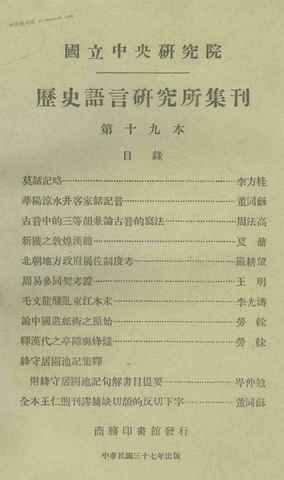 1-国立*研究院历史语言研究所集刊第十九本目录封面