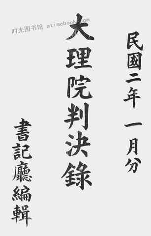 网盘路径:/时光图书馆珍藏系列/书籍文件/老图书/《大理院判决录(民国二年一月份)》电子版合集.db