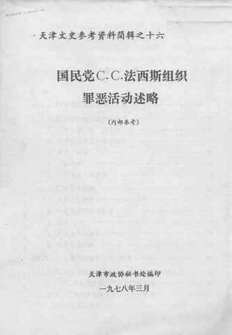 | 网盘路径:/时光图书馆珍藏系列/书籍文件/老图书/《天津文史参考资料简辑 16_国民*C.C.法西斯组织*活动述略》电子版合集.db | ||