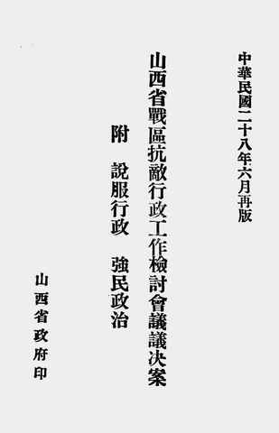 | 网盘路径:/时光图书馆珍藏系列/书籍文件/老图书/《山西省战区抗敌*工作*会议议决案》电子版合集.db | ||