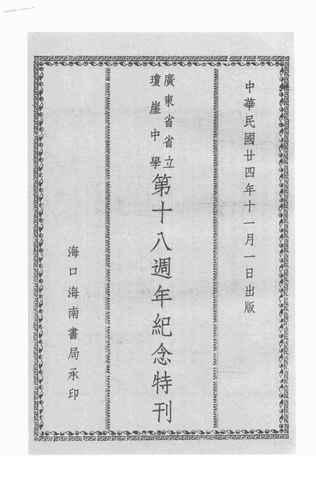 | 关键词:广东省,琼崖中学,第十八周年,纪念特刊, | ||