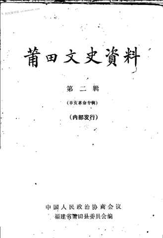 | 网盘路径:/时光图书馆珍藏系列/书籍文件/老图书/《莆田文史资料_第2辑_辛亥*专辑》电子版合集.db | ||