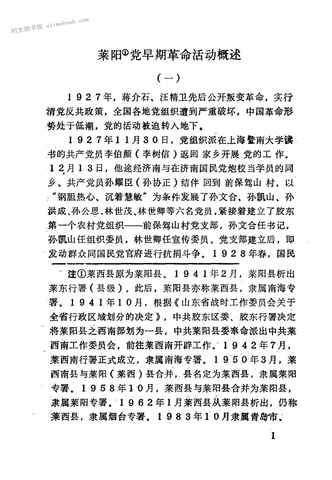 | 网盘路径:/时光图书馆珍藏系列/书籍文件/老图书/《莱西*史资料_第2辑_(纪念*莱阳县第一届委员会成立六十周年专题资料)》电子版合集.db | ||