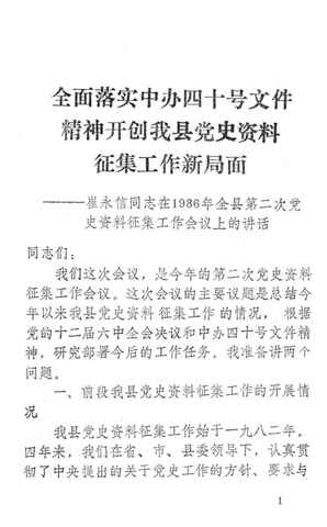 2-一、全面贯彻中办发(1985)40号文件精神,开创我县*史资料征集工作新局面——县委副书记、*史资料征集领导小组组长崔永信同志在1986年全县第二次*史资料征集工作会议上的讲话