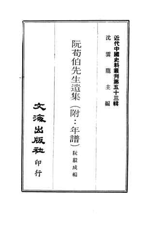 | 网盘路径:/时光图书馆珍藏系列/书籍文件/老图书/《阮性存先生遗集》电子版合集.db | ||