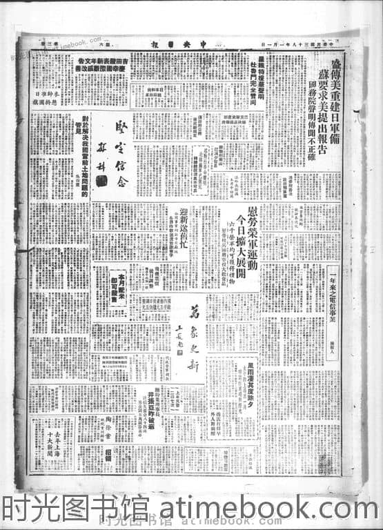 网盘路径:/时光图书馆珍藏系列/书籍文件/老报纸/江苏/《*日报》(南京)1945-1949/《*日报》南京版1949年影印版合集.db