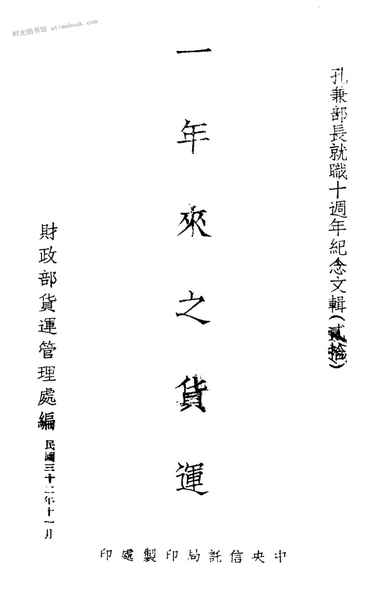 | 网盘路径:/时光图书馆珍藏系列/书籍文件/老图书/《一年来之货运》电子版合集.db | ||