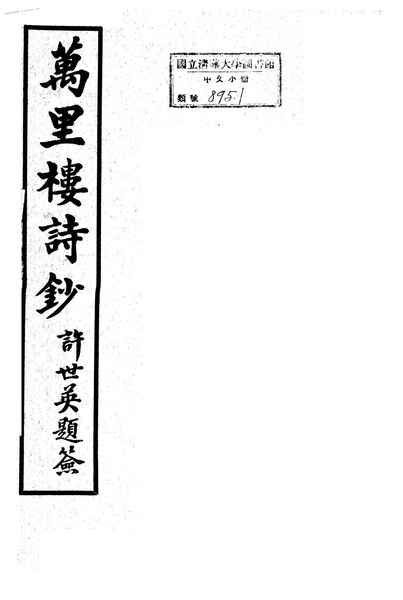 | 网盘路径:/时光图书馆珍藏系列/书籍文件/老图书/《万里楼诗抄》电子版合集.db | ||