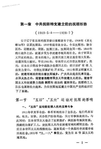 2-第一章*抚顺特支建立前的抚顺形势(191954——19287)