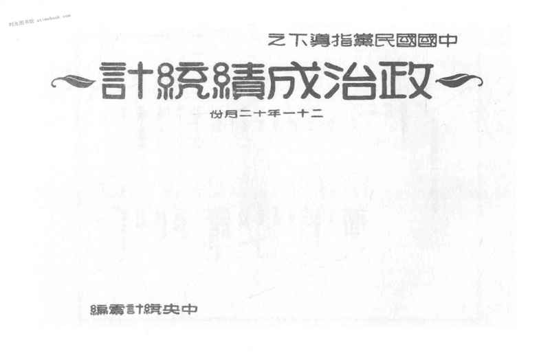 | 网盘路径:/时光图书馆珍藏系列/书籍文件/老图书/《中国国民*指导下之政治成绩统计12月份》电子版合集.db | ||