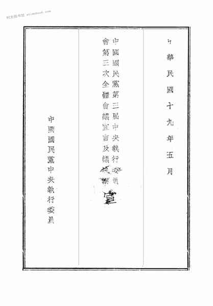 | 网盘路径:/时光图书馆珍藏系列/书籍文件/老图书/《中国国民*第三届*执行委员会第三次全体会议宣言及议决案宣传大纲》电子版合集.db | ||
