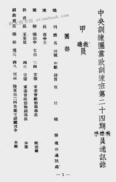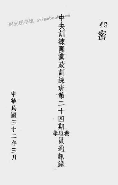 | 网盘路径:/时光图书馆珍藏系列/书籍文件/老图书/《*训练团*政训练班第二十四期教职学员通讯录》电子版合集.db | ||
